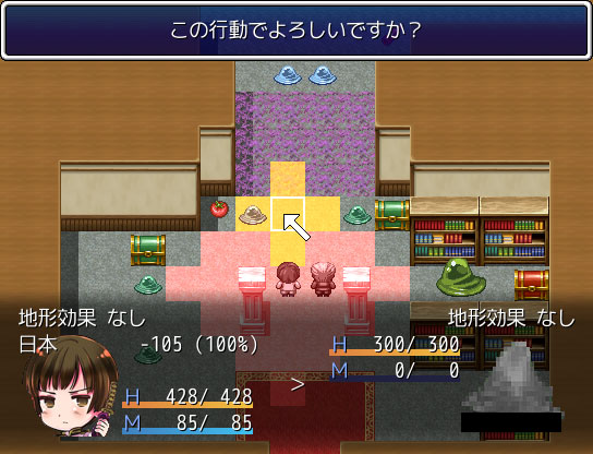 SRPGシーンもテストプレイ済みですが、なんか物足りん。もうちょい難易度あげたい。